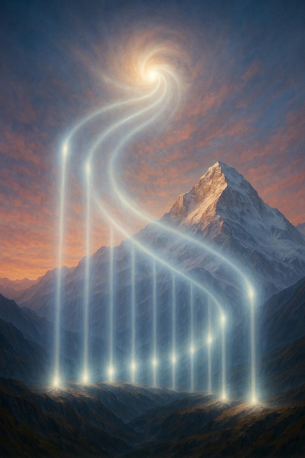 Nadie supo explicar por qué aquella noche el glaciar se volvió tan silencioso. Pero algo antiguo estaba ocurriendo: una vibración que no pertenecía al tiempo humano, un llamado que venía de más lejos que las estrellas. Doce luces cruzaron el velo, recordando al fin el camino de vuelta. Sobre la nieve, sus cuerpos terrenales aguardaban como puertas entreabiertas. Y mientras el cielo parecía contener el aliento, cada luz tomó su lugar, no para huir del mundo, sino para regresar a él con una misión nueva: despertar, acompañar y preparar la paz que estaba por llegar. Porque el regreso —largamente prometido— ya no podía detenerse.
