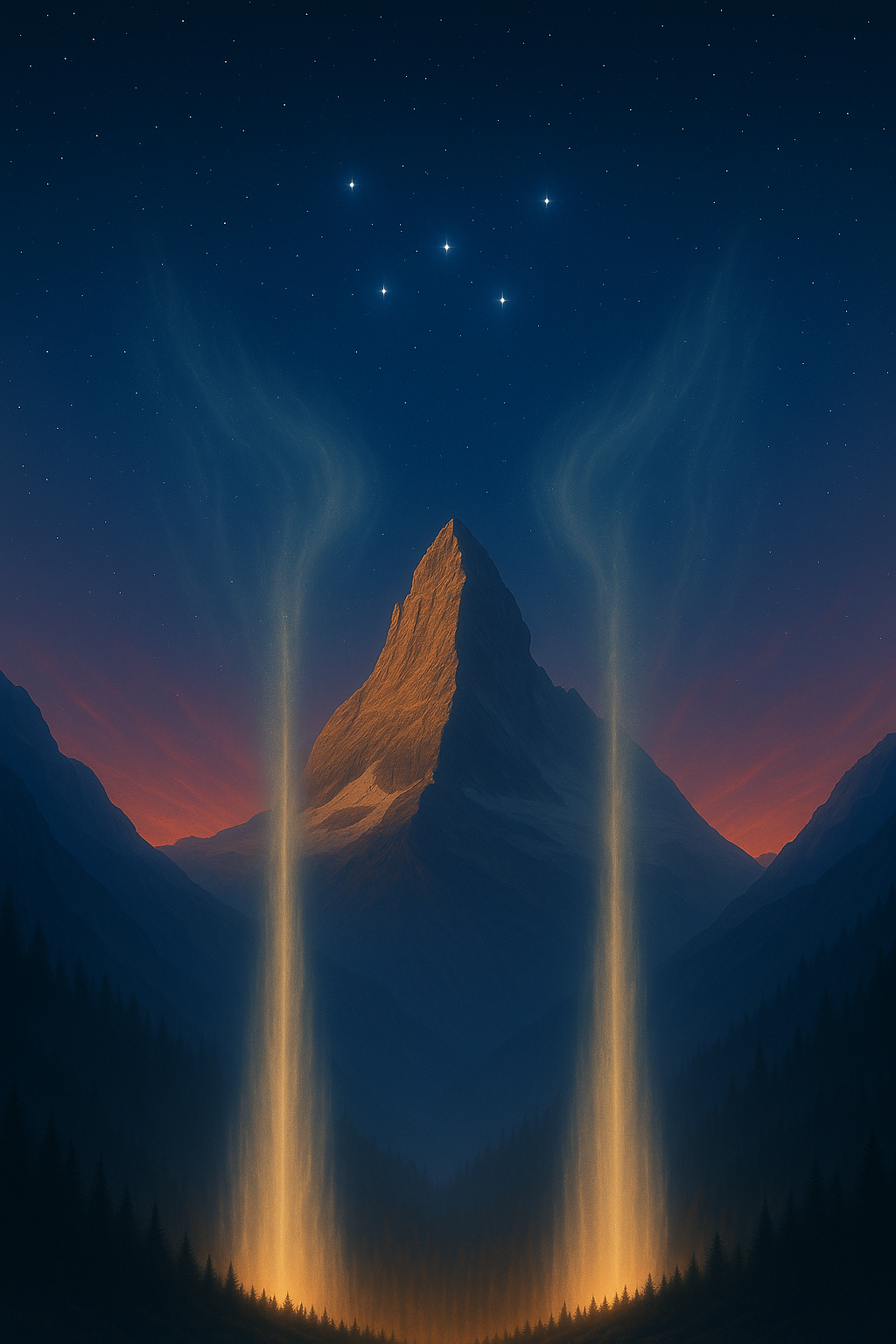 Nada le pertenece al instante: todo es tránsito de un propósito antiguo que aún despierta, silencioso, entre las sombras y el oro del amanecer.