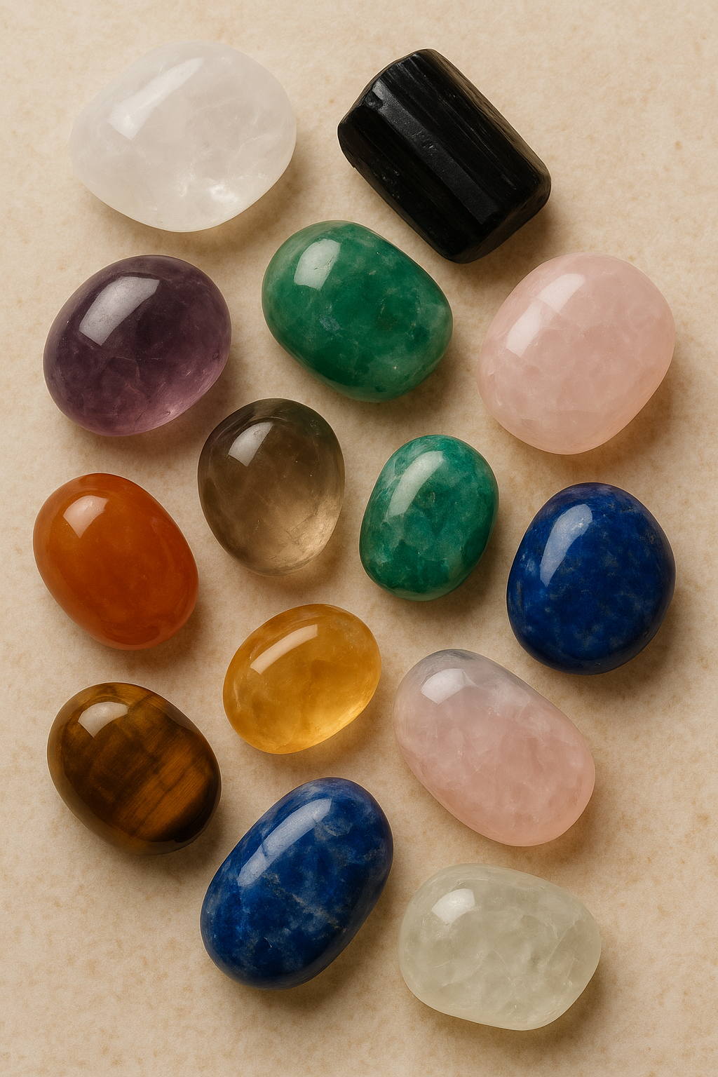 La magia de las piedras energéticas se basa en la creencia de que ciertos minerales y cristales tienen propiedades curativas o energéticas que pueden influir en el bienestar físico, emocional y espiritual de una persona. Cada tipo de piedra se asocia con diferentes propiedades. Por Cuarzo Rosa: Es conocida como la piedra del amor incondicional. Amatista: A menudo utilizada para promover la calma, la paz y el equilibrio espiritual. Citrino: Conocida por su capacidad para atraer la prosperidad y el éxito. Turmalina Negra: Protege contra las energías negativas y mejora el bienestar general. Jade: Promueve la serenidad y la pureza del corazón.